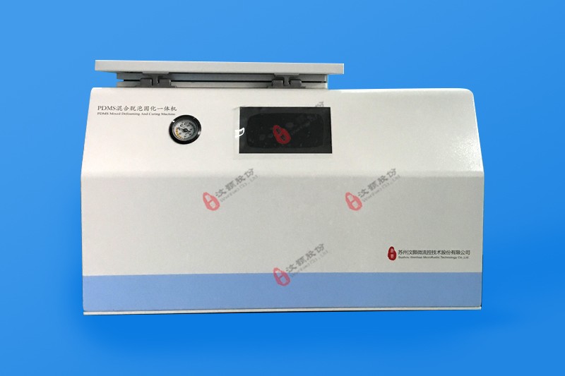 The PDMS hybrid defoaming and curing integrated machine (WH-HTG-01) was independently developed by Suzhou Wenhao Microfluidics Technology Co., Ltd. and has independent intellectual property rights. It is developed for the production of PDMS chips in laboratories in the field of microfluidic chips. It completely replaces manual operations and realizes full automation. It has the three functions of mixing, defoaming and curing of PDMS prepolymer A and B components, and can be automatically Define the mixing ratio, working temperature, vacuum, and working time. The setting of double stations improves the production efficiency of PDMS chips per unit time. It can be produced in a single piece or two pieces at the same time. The negative pressure degassing and high temperature curing can be simultaneous It can also be operated separately.