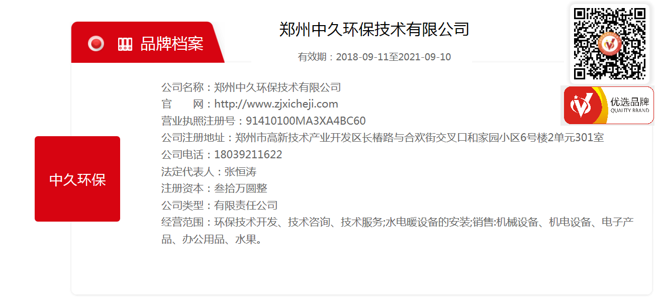 中久環保榮獲CCTV中國優選品牌檔案 掃碼可查看檔案