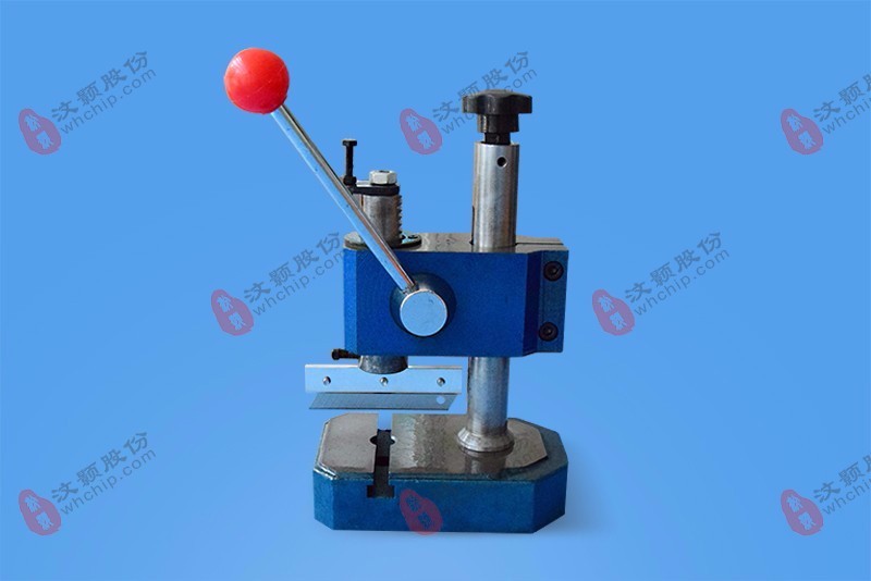 該款產品將刀頭固定在臺式打孔器上,刀頭高度可調節(jié),按壓手柄可實現垂直裁切芯片。